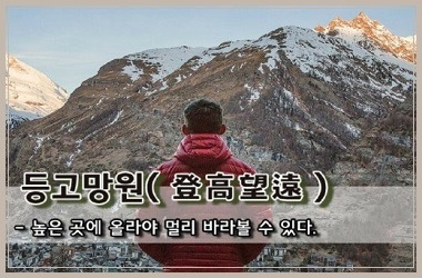 높은 곳에 올라야 멀리 볼 수 있다. 높은 곳에 올라가면 멀리 볼 수 있는 것은 당연한 논리다. 그러니 누구든지 높은 곳에 올라가기 위해서는 목표가 뚜렷하고 목적이 있어야 하며 거기에 노력이 동반하여야 됨을 말한다.