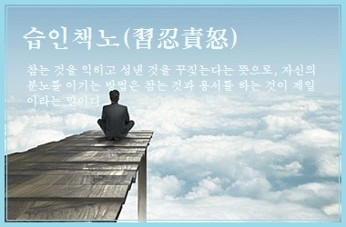 참는 것을 익히고 성낸 것을 꾸짖는다는 뜻으로, 자신의 분노를 이기는 방법은 참는 것과 용서를 하는 것이 제일이라는 말이다.