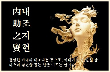 아내가 집안일을 잘 다스려 남편을 돕는다’는 뜻의 내조(內助)는 고사성어 내조지현(內助之賢)과 내조지공(內助之功)에서 비롯되었다.