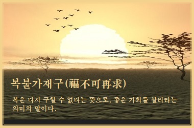 복은 다시 구할 수 없다는 뜻으로, 좋은 기회를 살리라는 의미를 일컫는 말이다.