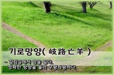 갈림길에서 양을 잃다는 뜻으로, 정확한 방향을 몰라 우왕좌왕한다는 말이다.