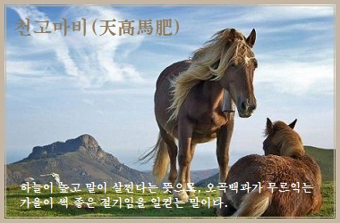 그런데 아주 맑은 가을날을 이야기하려면 하늘이 높다는 뜻을 가진 '천고'만 이야기하면 될 텐데 말이 살찐다는 '마비'를 함께 붙인 이유는 무엇일까?