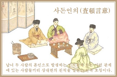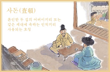 '사돈(査頓)'은 혼인한 두 집의 부모들끼리 또는 두 집안의 같은 항렬끼리 부르는 이름말이라고 '이야기 상식백과'에 전한다.