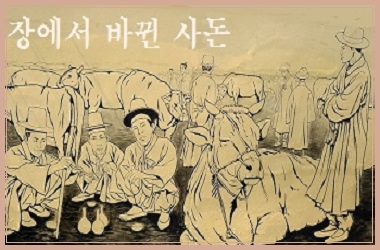황서방과 박서방은 마음에 드는 소를 고르려고 여기저기 기웃거리다가 한 곳에서 마주쳤다. 오랜만에 만난 양 사돈은 그동안 격조했던 터라 아들딸들이 잘 사는지 궁금해서 집안 사정을 물은 다음, 어쩐 일로 소시장에 나왔느냐고 물었다.