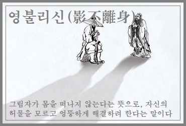 그림자가 몸에서 떨어지지 않는다는 이 성어도 허물이 있을 때 고치지 않고 비난만 해서는 결코 사라지지 않는다는 깨우침을 준다.