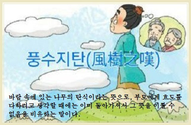 나무는 조용히 있고 싶으나 바람이 그치지 않고, 자식은 봉양하고자 하나 부모님은 기다려 주시지 않는다.