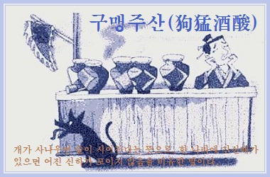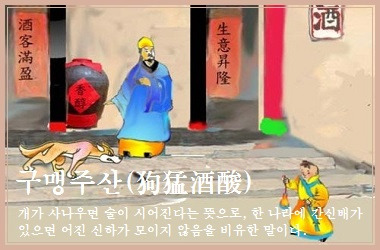 개가 사나우면(狗猛) 술이 시어진다(酒酸)는 말은 앞뒤 인과가 동떨어지지만 이런 경우다. 맛있는 술을 판다고 이름난 술집에 개를 기르면 겁을 내는 손님이 발길을 돌려 술이 팔리지 않는다. 술이 시어질 수밖에 없다.