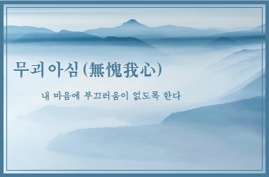 내 마음에 부끄러움이 없도록 한다는 뜻으로, 다른 사람의 허물을 탓하기 전에 내 스스로 엄격하고 절제된 모습을 보여야 한다는 의미의 말이다.