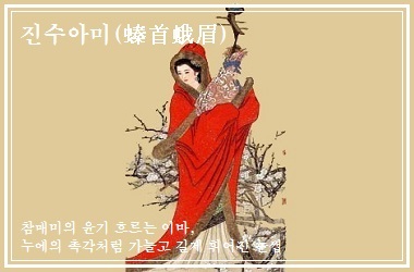 진수(螓首)는 참매미의 윤기 흐르는 이마, 아미(蛾眉)는 누에의 촉각처럼 가늘고 길제 휘어진 눈썹으로 미인을 가리키는 말이다.