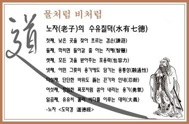 '도덕경'의 저자이자 무위자연을 설파했던 노자는 인간 수양의 근본과 아울러 사람이 세상을 살아가는 데 필요한 것을 물이 가진 바람직하고 본받아야 할 일곱 가지의 덕목에서 찾아야 한다는 의미로 '수유칠덕(水有七德)'을 역설했다.