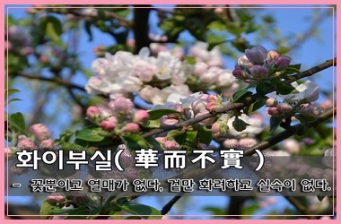 여기서 유래하여 화이부실은 화려하지만 열매를 맺지 못하는 식물처럼 겉모습만 번지르르하고 실속이 없는 경우를 비유하는 고사성어로 사용된다. 우리나라 속담 가운데 '빛 좋은 개살구'라는 표현과 같은 의미이다.