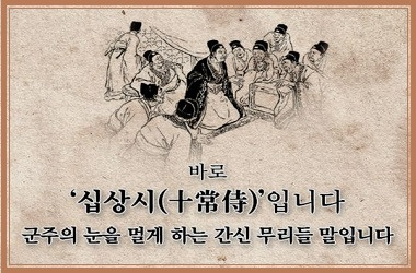 원래 십상시(十常侍)라는 말은 중국 한나라(후한 後漢)를 망하게 한 10여 명의 환관을 두고 하는 말이다. 그들은 권력에 깊이 개입하여 최고 권력자인 황제의 눈과 귀를 흐리게 하고 권력을 마음대로 휘두르며 이권을 챙기고 나라의 질서를 어지럽혀 혼란에 빠지게 하였다. 십상시(十常侍)는 오늘날에 와서 최고 권력자의 곁에서 최고 권력자의 눈과 귀를 흐리게 하고 국정을 농단하면서 이권을 챙기는 자들을 통칭하여 일컫는 말이 되었다. 동서고금의 역사를 돌아보면 십상시(十常侍)가 나타나면 나라는 혼란에 빠지고 정권이 무너지고 결국 망하게 된다. 그런데 그 십상시는 대체로 최고 권력자와 가장 가까운 위치에 있으면서 최고 권력자가 믿고 의지하는 사람들인 친척과 외척, 환관 등에서 나타났다는 사실이다. 그래서 현명한 통치자는 그들을 늘 경계하며 일정한 거리를 두었다.