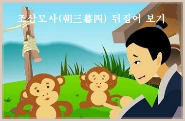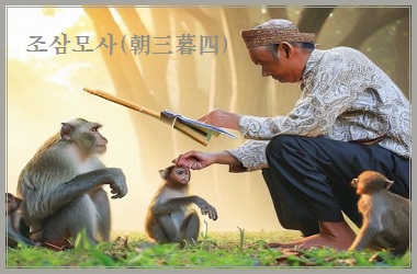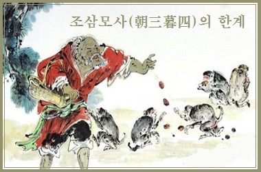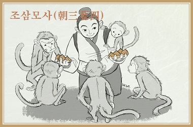 저공(狙公)이 도토리를 원숭이들에게 나누어 주면서, “아침에 세 개 저녁에 네 개 주겠다”고 하자 원숭이들이 모두 성을 냈다.
