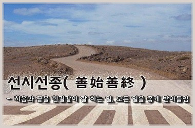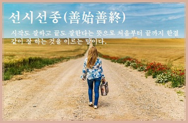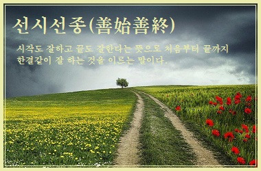 연초 훌륭한 목표를 세우시고 연말에 그 목표를 무리 없이 마무리 하시면 아마 그 일 보다 더 좋은 일은 없을 것이다. 그 말을 선시선종(善始善終)이라 한다. 이 말은 장자(莊子) 第6 대종사편(大宗師編)에 나오는 말니다. ‘처음부터 끝까지 한 결 같이 잘 한다’는 뜻이다. 비슷한 말로 ‘처음부터 끝까지 있는 힘을 다 한다’는 뜻의 시종불해(始終不懈), ‘처음부터 끝까지 한결같다’는 시종여일(始終如一), 시종일관(始終一貫) 등의 말이 있다.