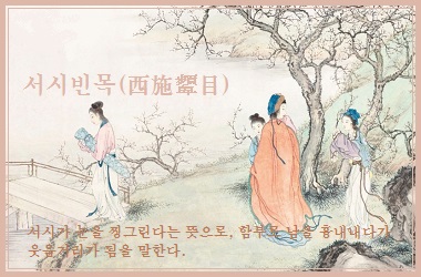 춘추시대(春秋時代) 말엽(末葉), 오(吳)나라와의 전쟁에서 패한 월왕(越王) 구천(勾踐)은 오왕(吳王) 부차(夫差)의 방심을 유도하기 위해 절세의 미인 서시(西施)를 바쳤다. 그러나 월나라의 절세 미녀인 서시는 가슴앓이로 말미암아 고향으로 잠시 돌아왔다.