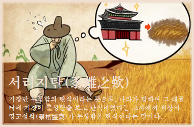 나라가 망하자 도성의 대궐 터가 기장밭으로 바뀌어 황폐해 진 것을 보고 한탄한다는 뜻으로, 부귀영화의 무상함을 탄식하는 말이다.