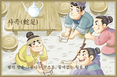 전국시대(戰國時代) 책사(策士)와 모사(謀士)의 문장(文章)들을 모아 만든 전국책(戰國策)에는 사족(蛇足)에 관한 이야기가 나온다. 전국시대(戰國時代) 초(楚)의 어느 중신이 조상의 제사를 지내고 가신(家臣)들에게 위로 술을 큰 잔에 주면서 귀한 술이니 맛보라 했다.