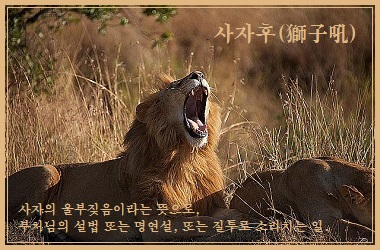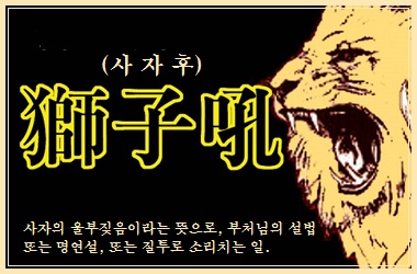 사자의 울부짖음이라는 뜻으로, 부처님의 설법 또는 명연설, 또는 질투로 소리치는 일을 일컫는 말이다.