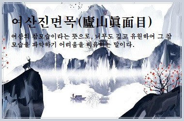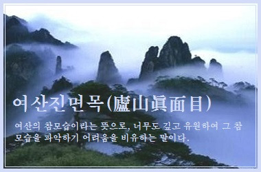 不識廬山眞面目(불식여산진면목) 여산의 진면목을 알지 못하네