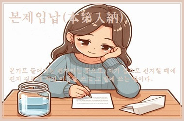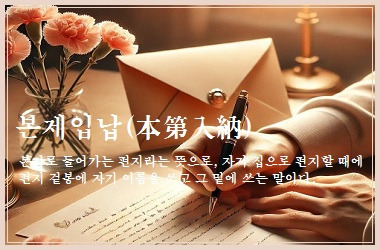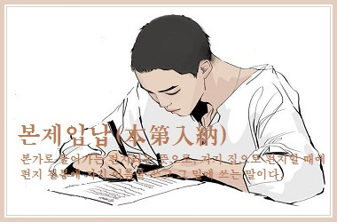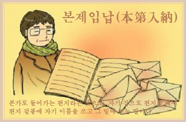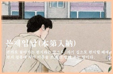 편지를 보내는 자신의 이름 뒤에 본제입납(本第入納), 본가입납(本家入納)이라고 써서 보냈습니다. 자신의 본 집으로 들어간다는 뜻입니다. 부모님의 성함을 함부로 쓰지 않던 옛날 우리의 미풍 양속 중의 하나이지요. 지금은 거의 없어졌지만 말입니다.