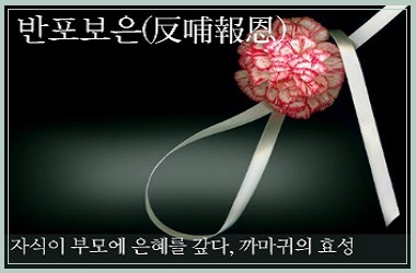 까마귀는 비록 새에 불과하지만 새끼가 다 자란 뒤에 늙은 어미에게 먹이를 물어다 주며 은혜를 보답하는 심성이 얼마나 갸륵한가. 부모님이 우리의 어린 시절을 꾸며 주셨으니 이제는 우리가 부모님의 말년을 아름답게 꾸며드려야 한다. 우리는 까마귀에게서 반포보은의 효를 배워야 한다.