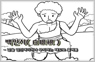 백안(白眼)이란 눈의 흰 부분을 말하며 ‘사람을 싫어하여 흘겨보는 것’ 또는 ‘냉정한 눈으로 바라보는 것’을 백안시(白眼視)라고 말한다.