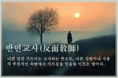 우리 주변에는 언행 그 자체로 우리를 가르쳐주는 스승이 있고, 또 우리 스스로를 반성케 함으로써 우리를 가르쳐 주는 스승이 있다. 후자를 우리는 흔히 반면교사(反面敎師)라고 한다.