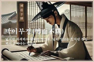 단순히 널리 아는 것만으로는 부족하며, 이를 깊이 파고들어 본질을 이해하는 능력이 필요합니다. "넓게 배우되 깊이 연구하라!" 이제 우리는 ‘박이부정’의 함정을 피하고, ‘박이구세(博而求精, 넓게 배우되 깊이 연구하는 태도)’를 실천하며 살아가야 할 것입니다.