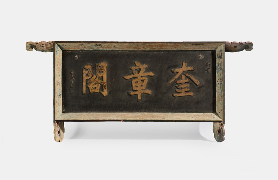 학술 및 정책 연구 기관이자 왕실 도서관이었던 규장각에 걸렸던 현판이다. 숙종 때 역대 국왕의 글과 글씨를 보관하기 위해 종부시 내에 작은 건물을 만들고 숙종이 쓴 이 현판을 걸었다가 정조 즉위 후 창덕궁 후원에 새롭게 건물을 만들고 이 현판을 옮겨 걸었다.