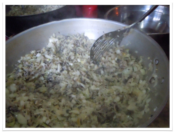 버섯과 양파를 썰어 볶습니다~ 고추장볶음 준비~!