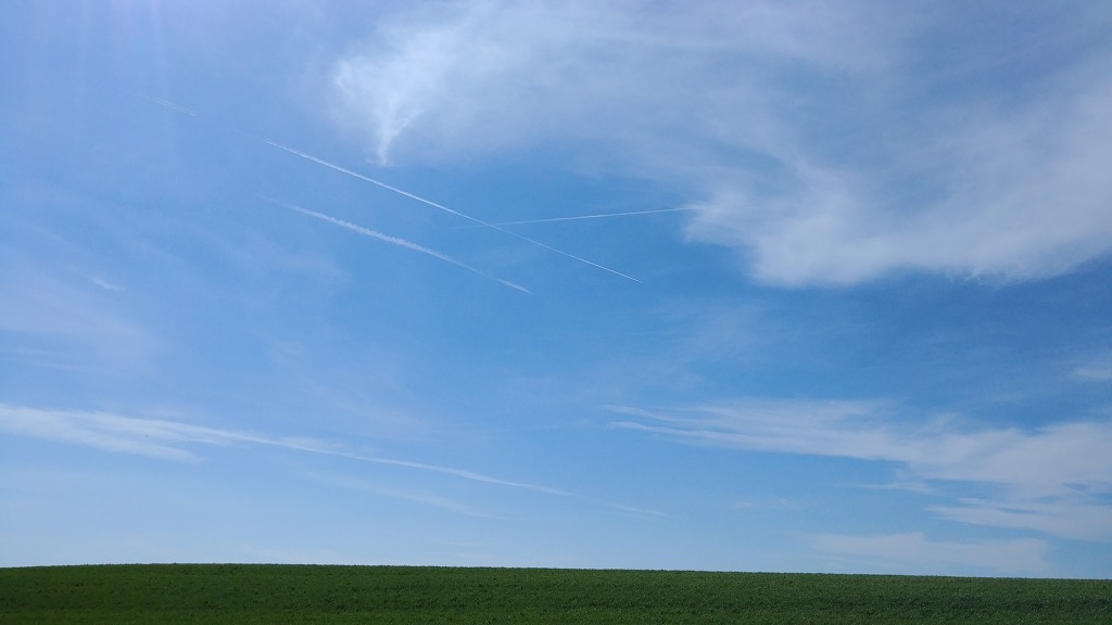 광활한 들판 위 하늘엔 비행운이 교차하고..
