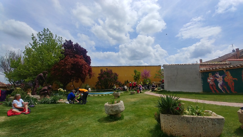 12:55 - 보아디야 델 카미노 마을 도착 (En EI camino 알베르게 숙소 정하고 휴식. 마당 넓고 잔디밭이 좋으나 사람 많고 복잡하다. 8유로, 아침식사 3유로, 저녁식사 10유로. 이곳에서 새로운 한국 젊은이들 만나고, 그제까지 앞서거니, 뒷서거니 했던 한국 청년들은 모두 앞서 가 버렸다)