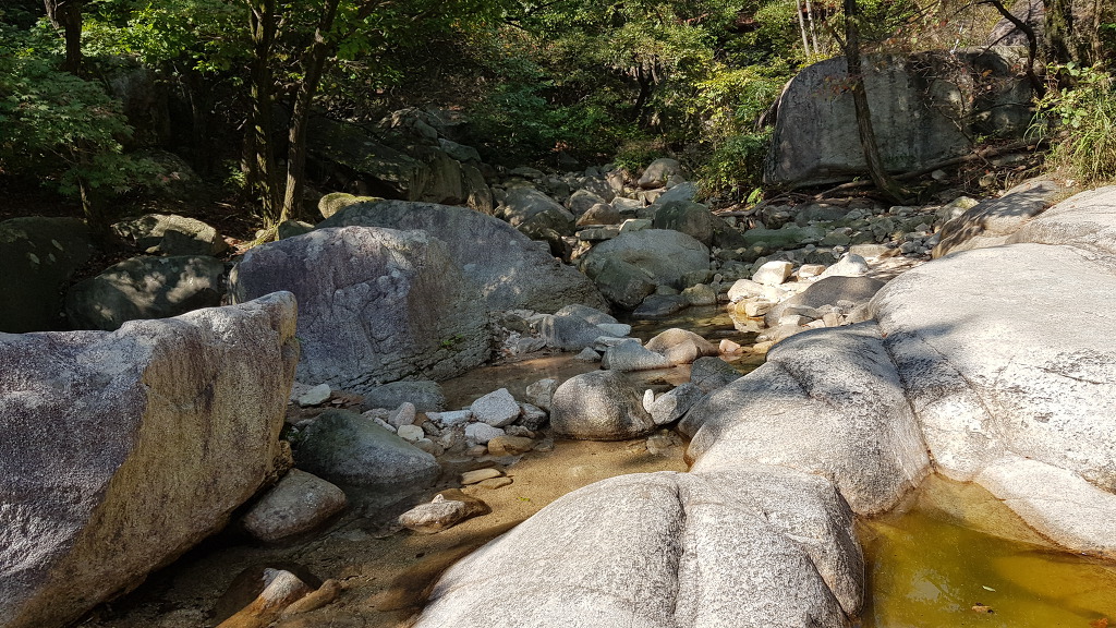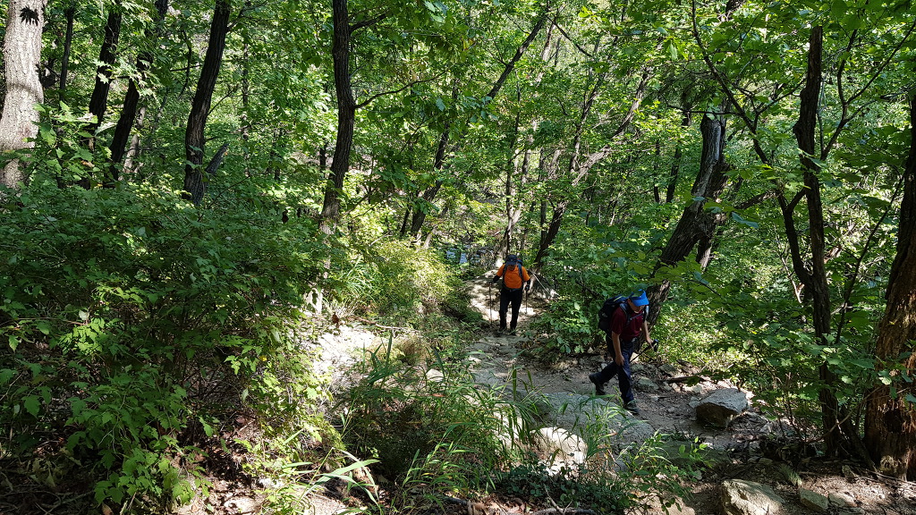 11:13 - 용어천 계곡 갈림길 지나, 가파라지는 오르막 길로