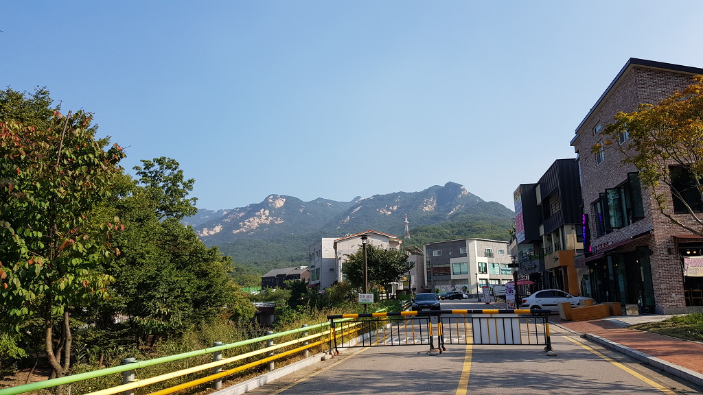 송추 상가지대(뒤로 지나온 여성봉이 보인다)