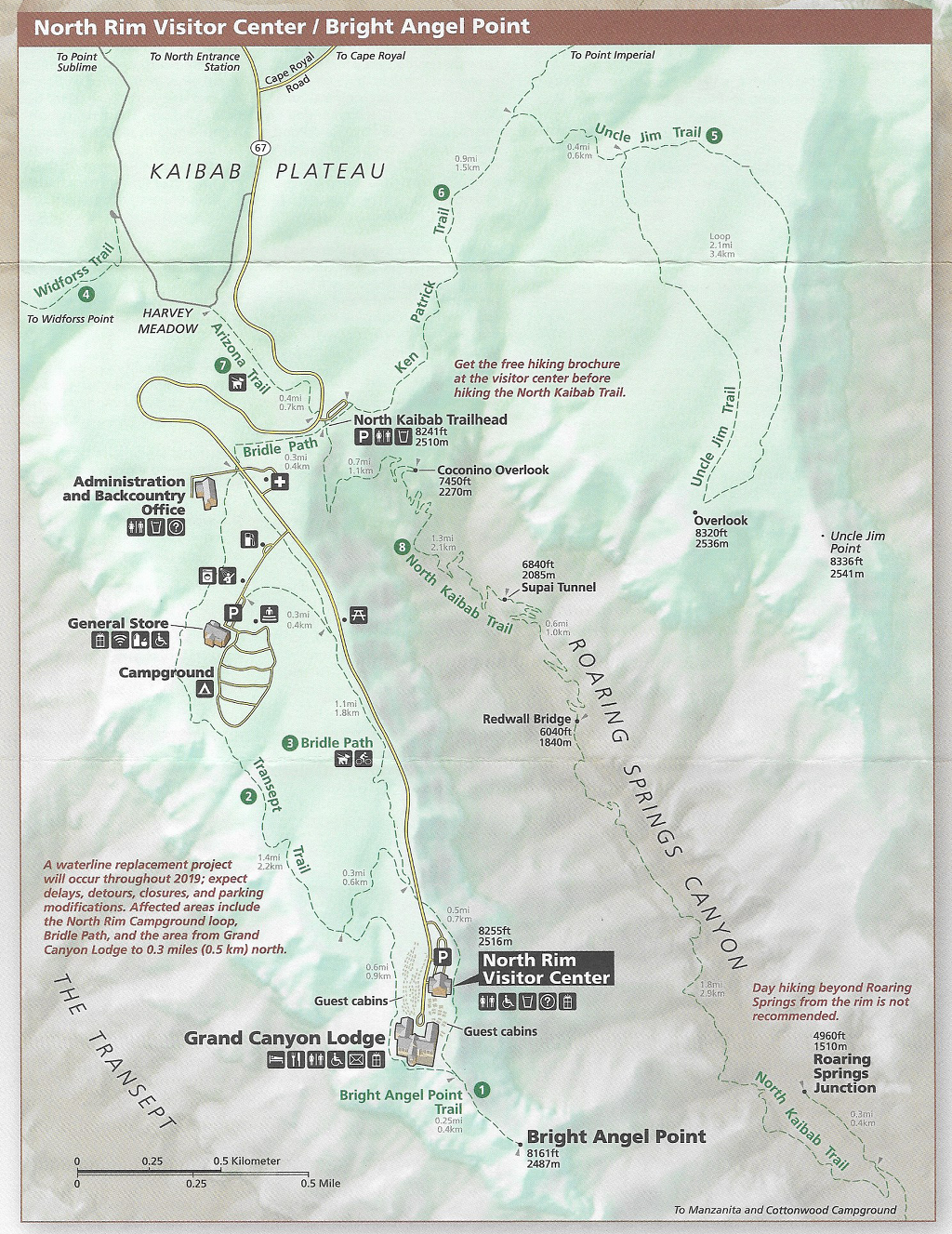 그랜드 캐년 노스림 지도(겨울엔 눈이 많이 쌓여 이 지역은 폐쇄된다)