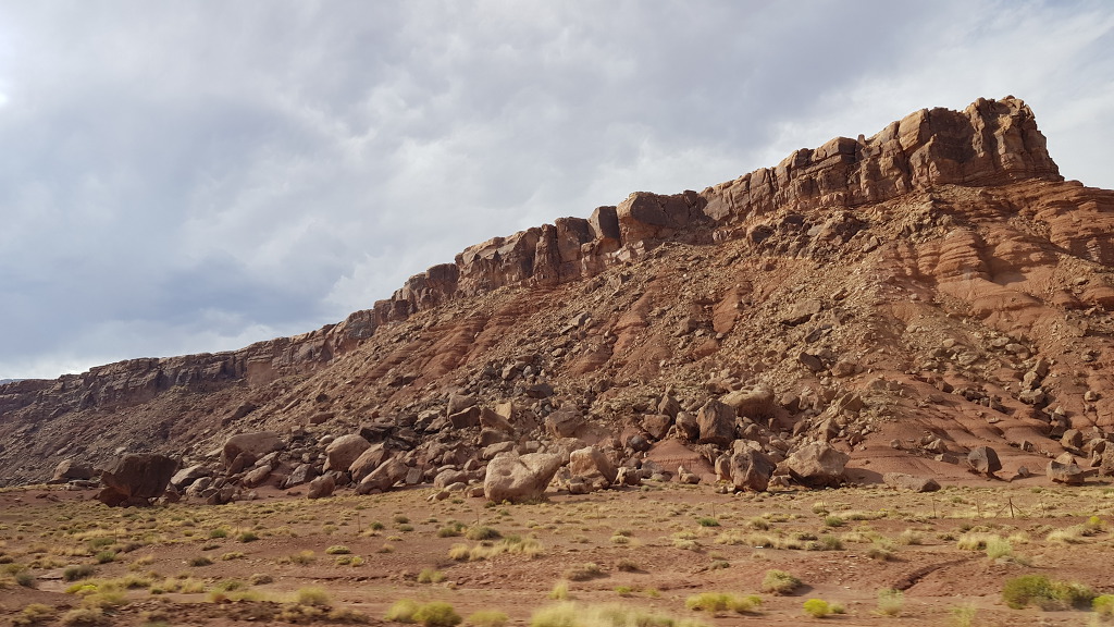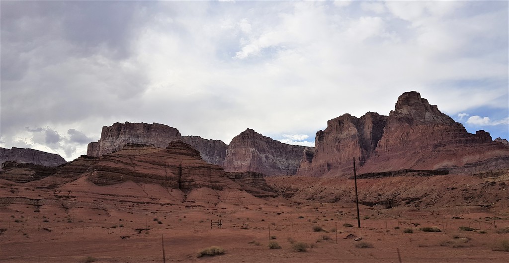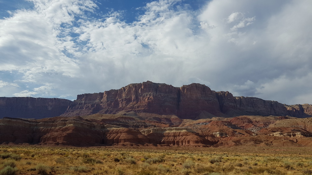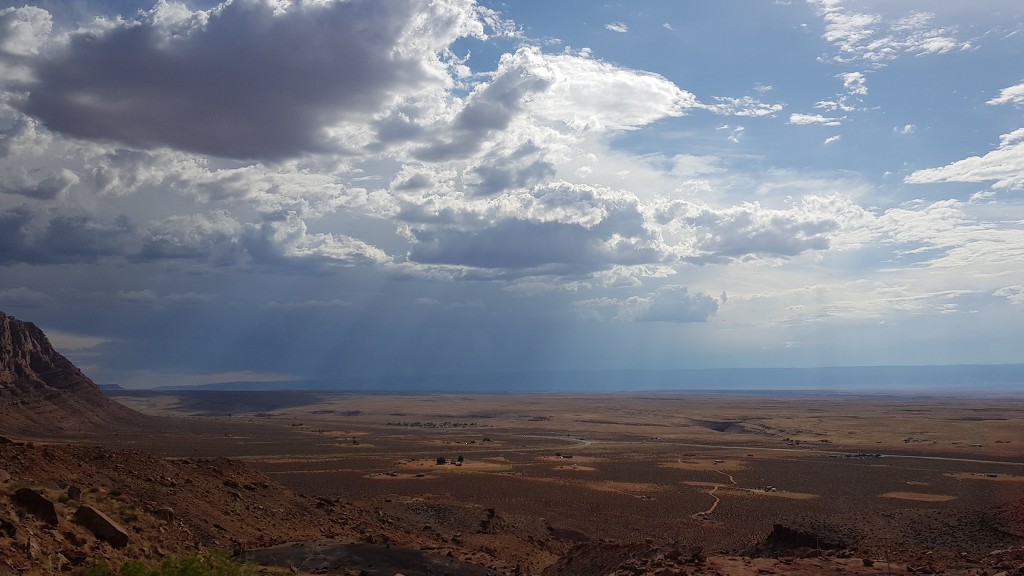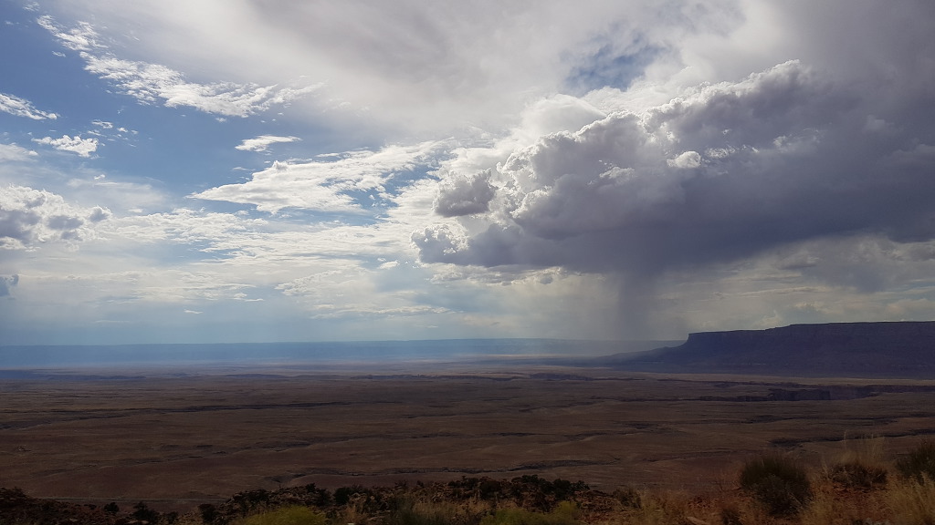 그랜드 캐년 노스림 가는 길의 사막 평원 (한쪽에 소나기가 내린다)