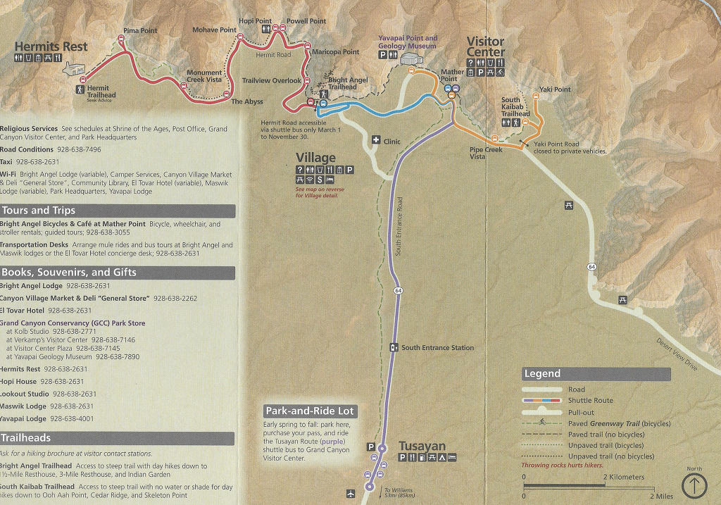 그랜드 캐년 사우스림 방문자센터, 빌리지 지도