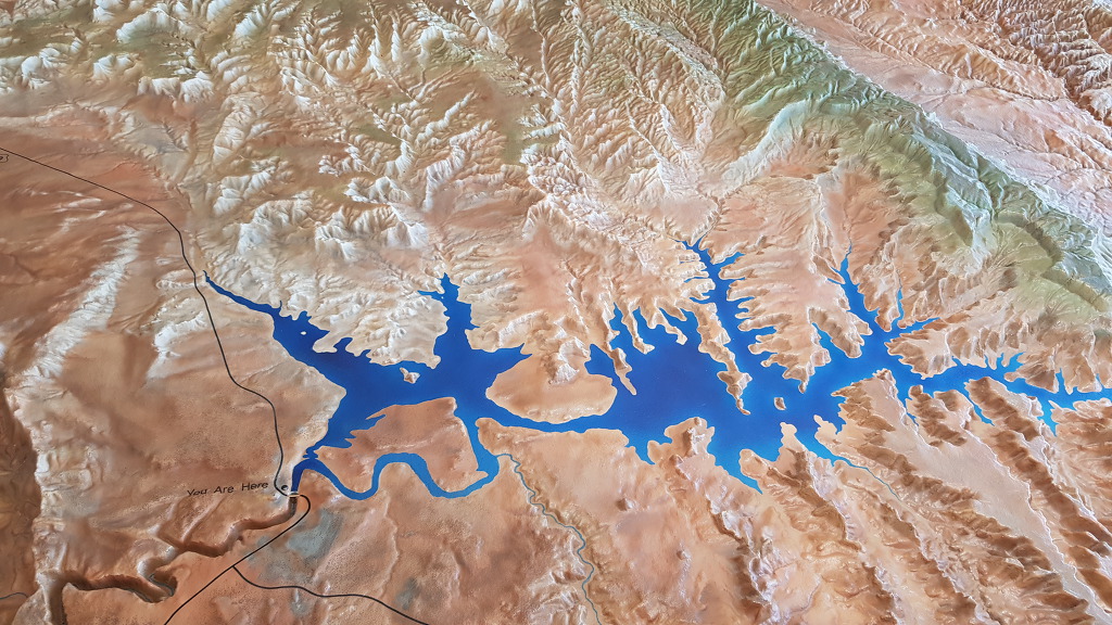 글랜 캐년댐에 의해 형성된 파월호수 (모형도)