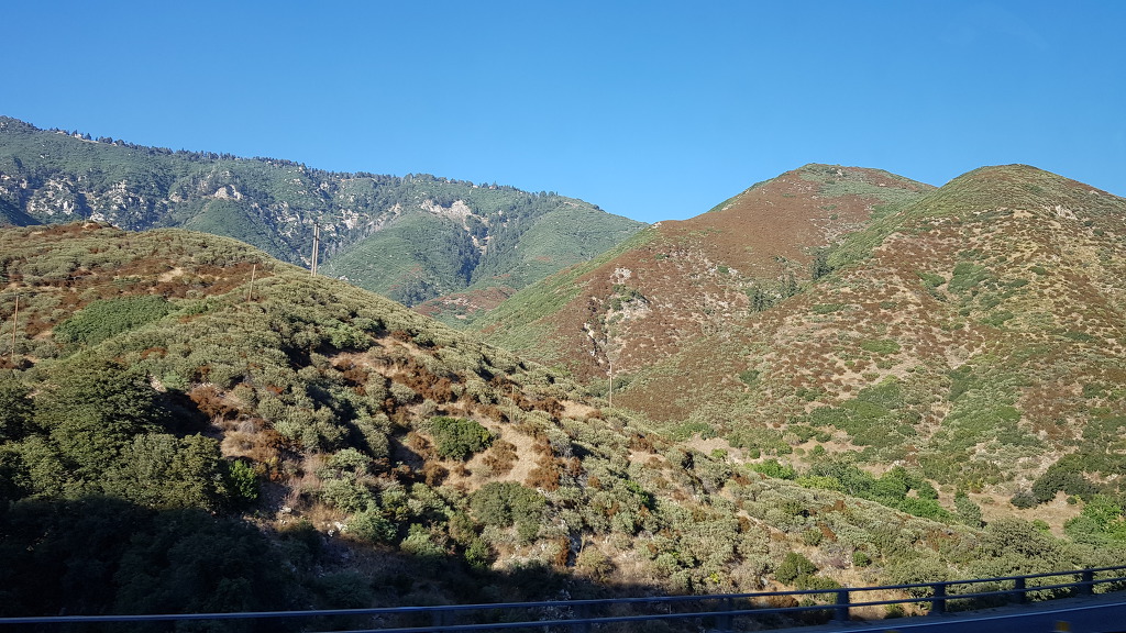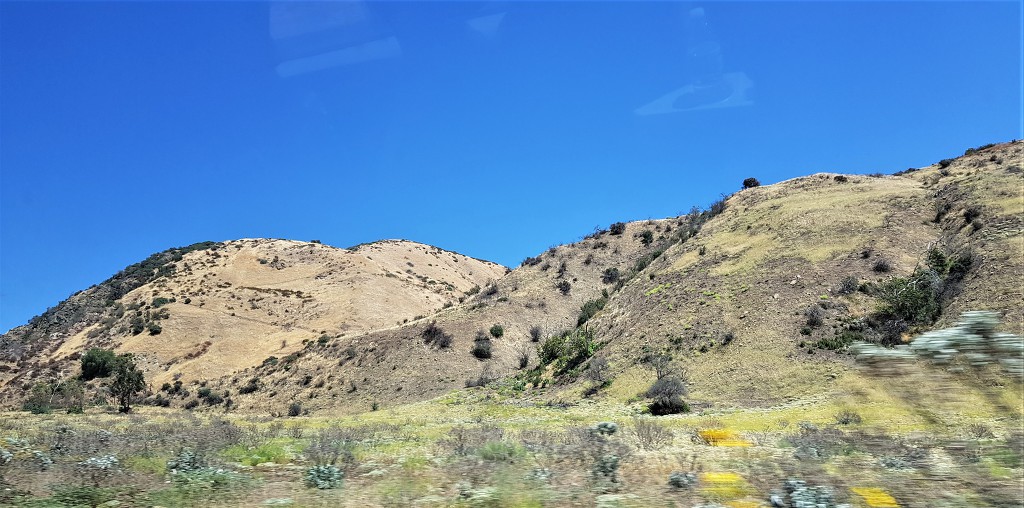 사막 지대 지나, 베이커스필드 지나 프레스노 가는 길