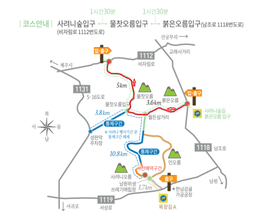 - 절물길(조릿대길)로