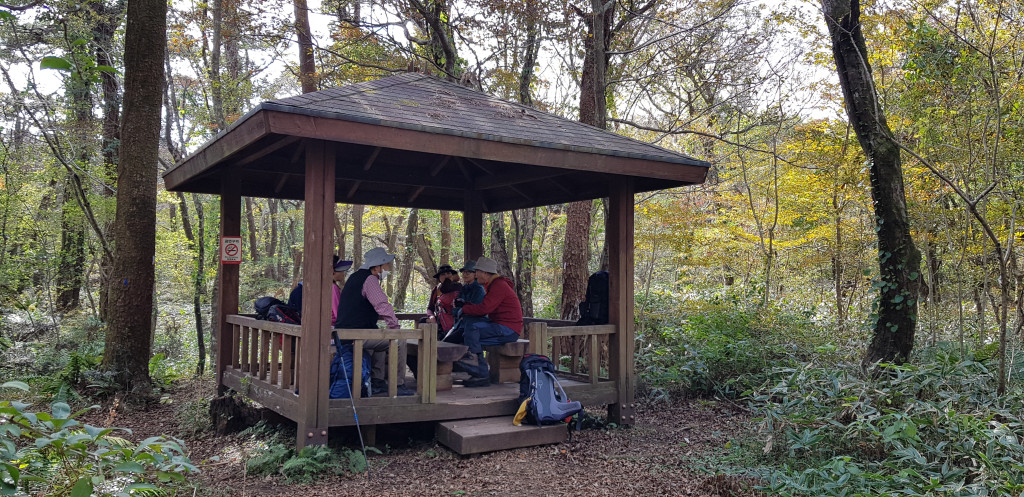 숲속 쉼터에서 휴식
