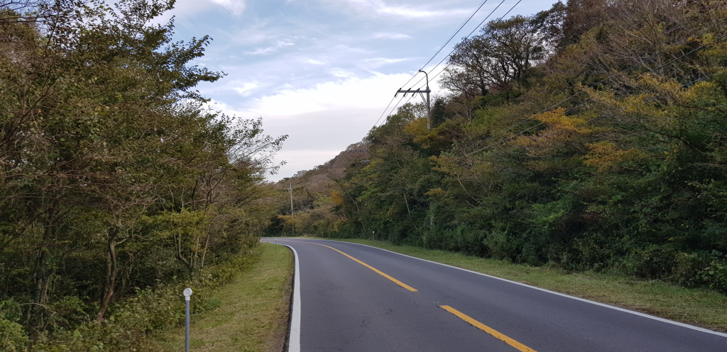 4:50 절물휴양림 입구 버스정류장 도착 (첫날 트레킹 끝)