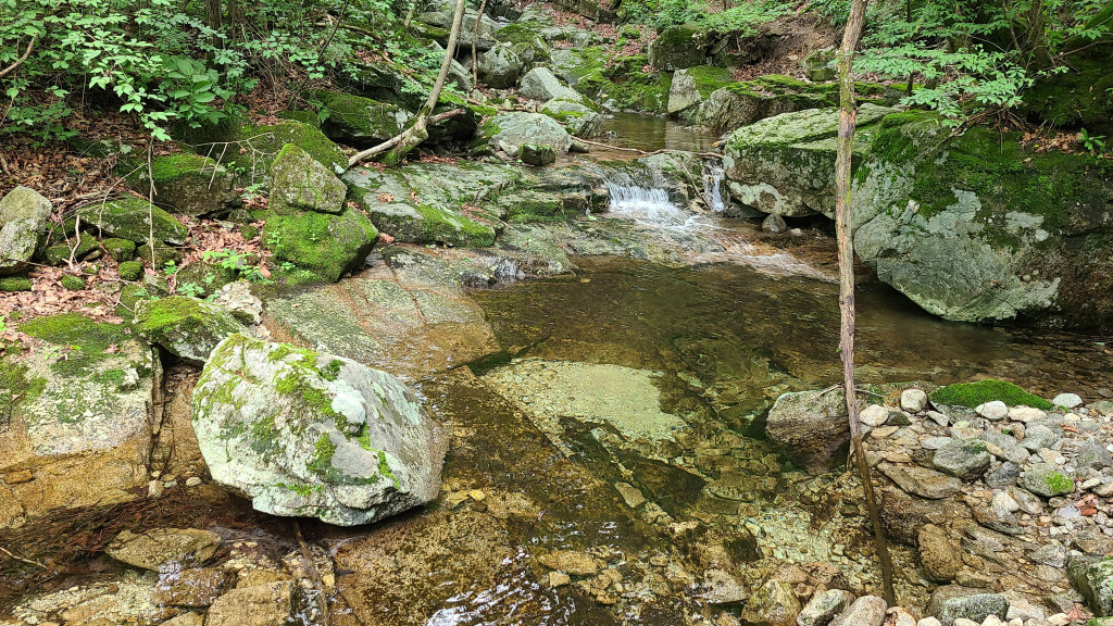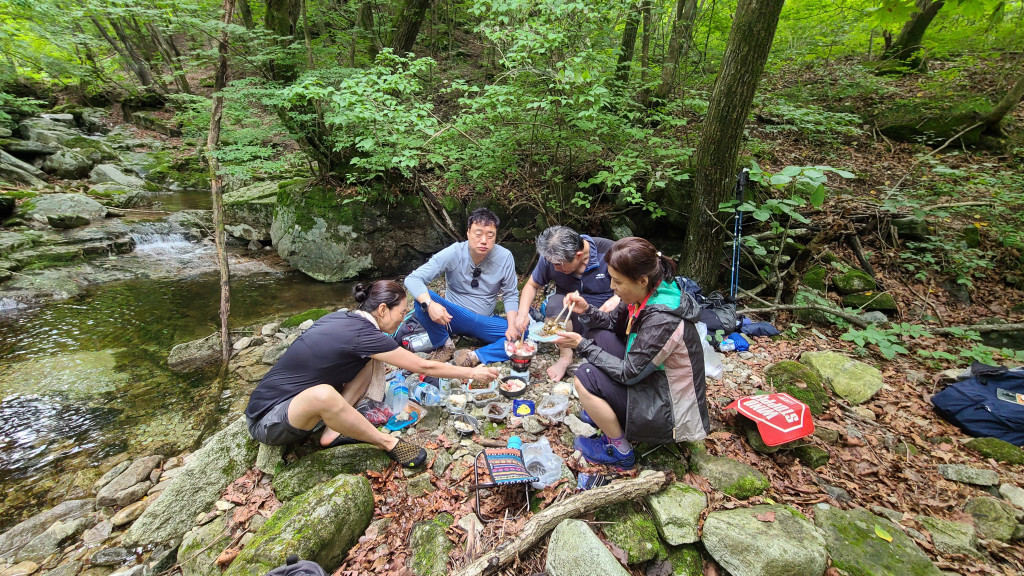 12:42 - 계곡 물가에서 휴식(점심 먹고, 2시간 이상 오랫동안 휴식)