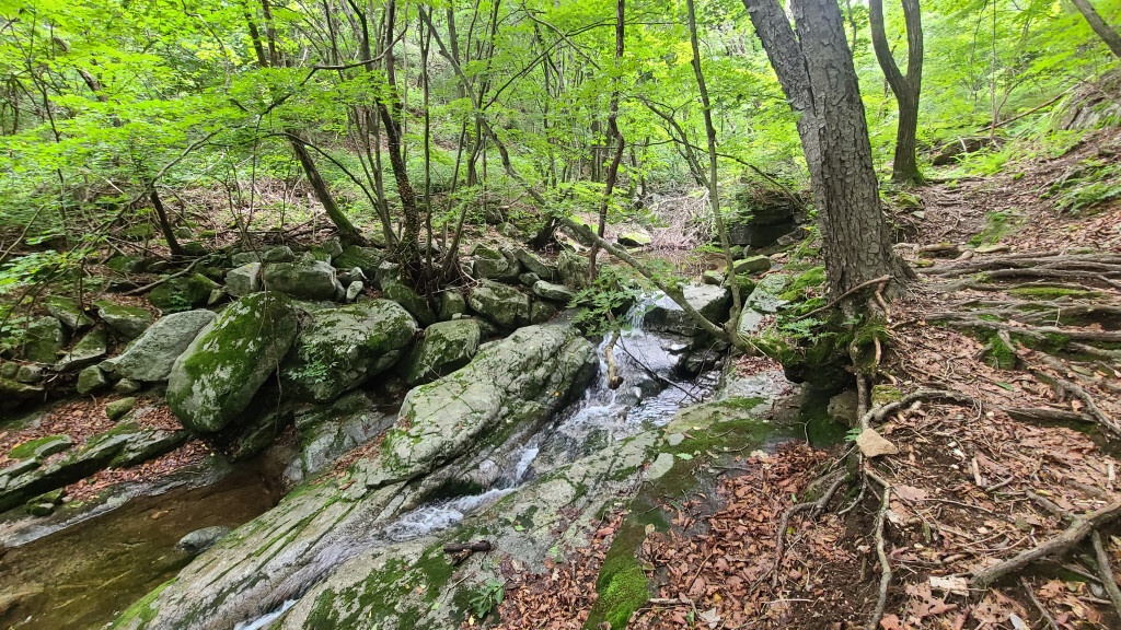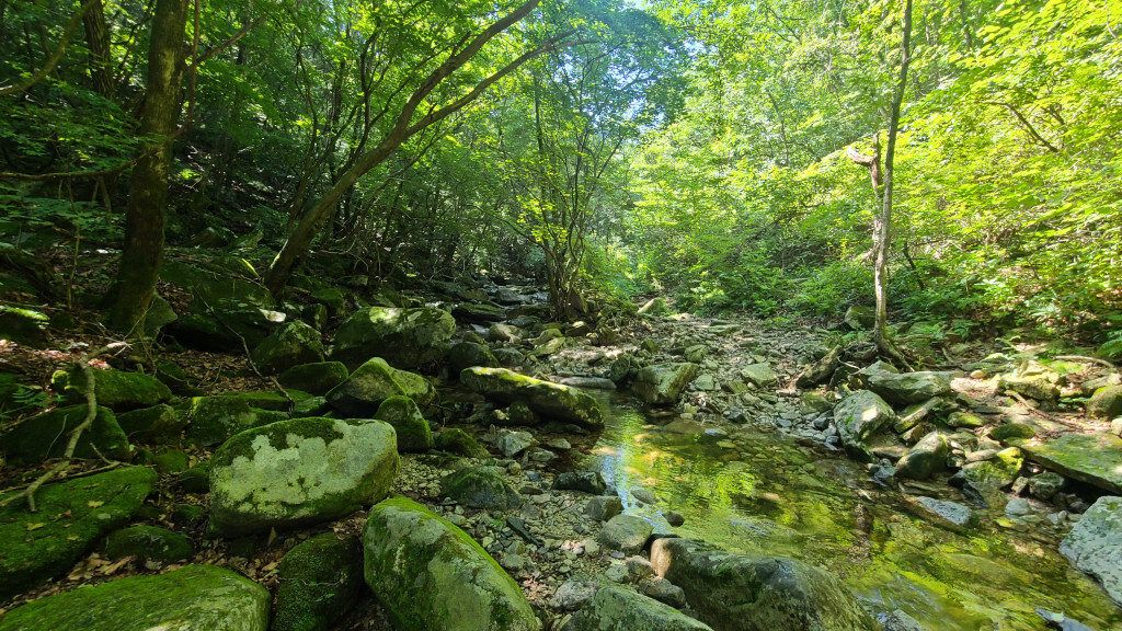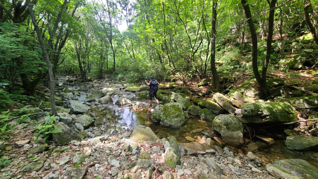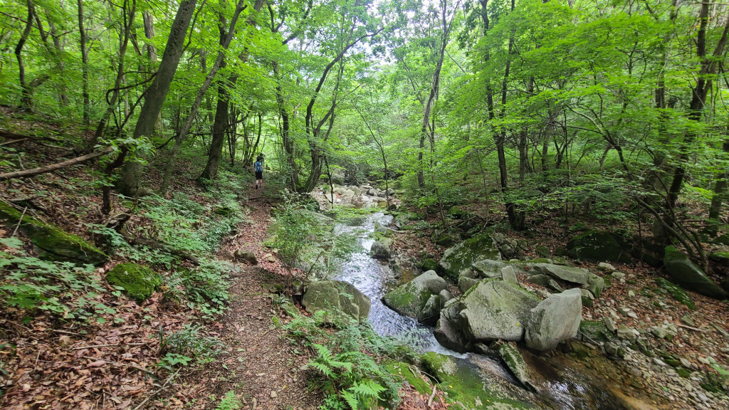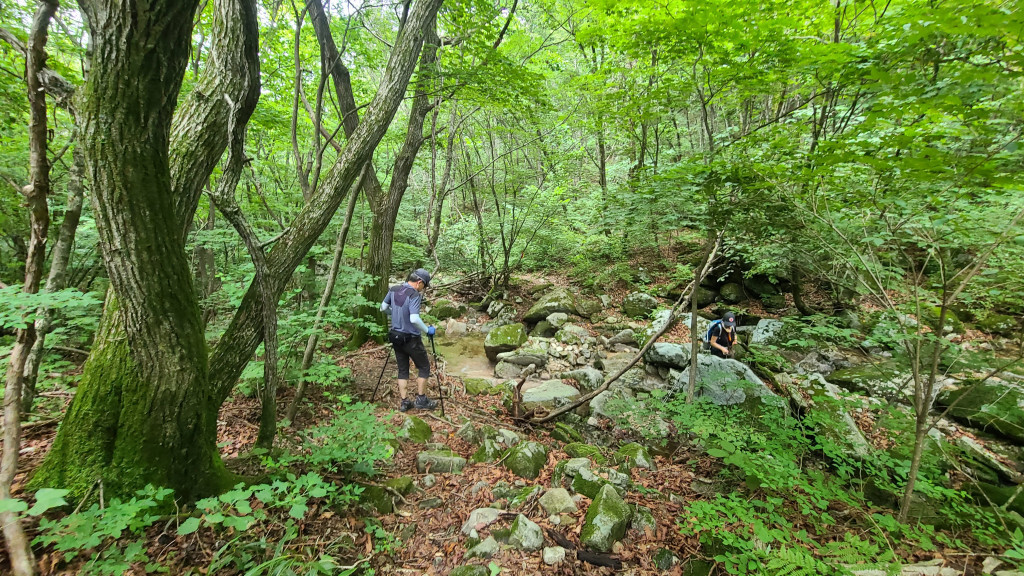 - 계곡 숲길, 계곡 여러 번 건너..