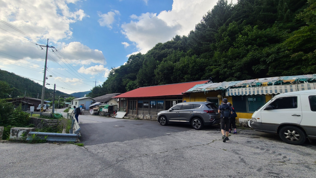 5:10 - 명성산 입구(폐쇄된 용화 휴게소 앞) (산행 끝. 놀며 쉬며 약 8시간. 거의 절반은 휴식 시간이었다)
