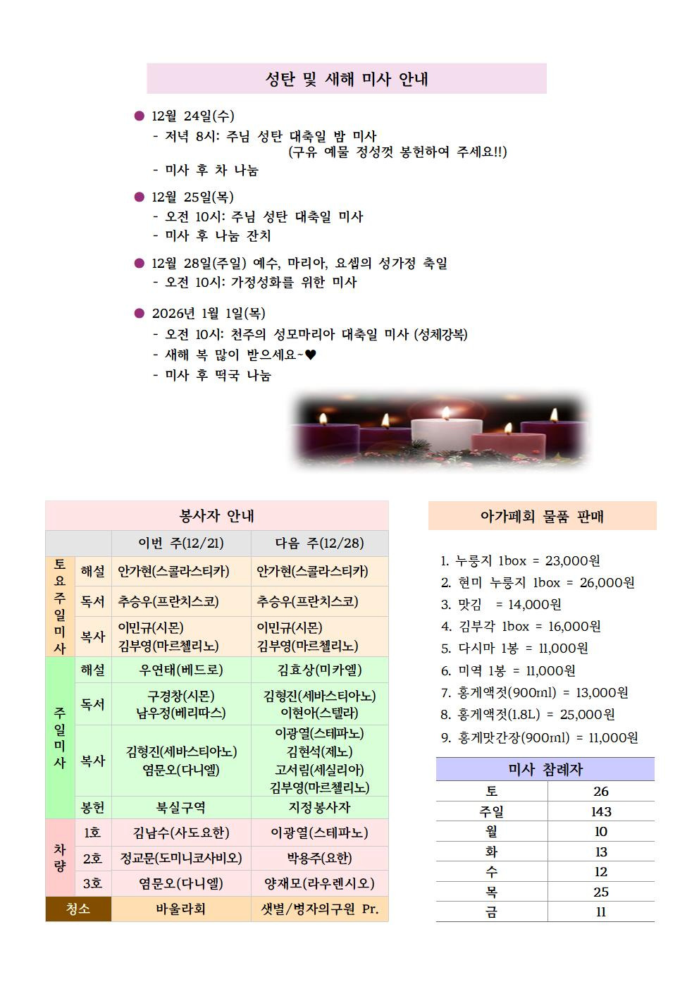 장계성당 소식지[대림 제4주일] 작성자최사비나|작성시간25.12.20|조회수31 목록 댓글 0 글자크기 작게가 글자크기 크게가 다음검색 현재 게시글 추가 기능 열기 북마크 공유하기 신고 센터로 신고 댓글 댓글 0 댓글쓰기 답글쓰기 댓글 리스트