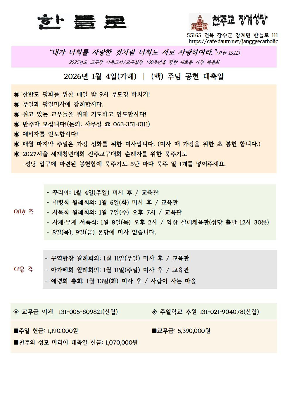장계성당 소식지[주님 공현 대축일] 작성자최사비나|작성시간26.01.03|조회수48 목록 댓글 0 글자크기 작게가 글자크기 크게가 다음검색 현재 게시글 추가 기능 열기 북마크 공유하기 신고 센터로 신고 댓글 댓글 0 댓글쓰기 답글쓰기 댓글 리스트