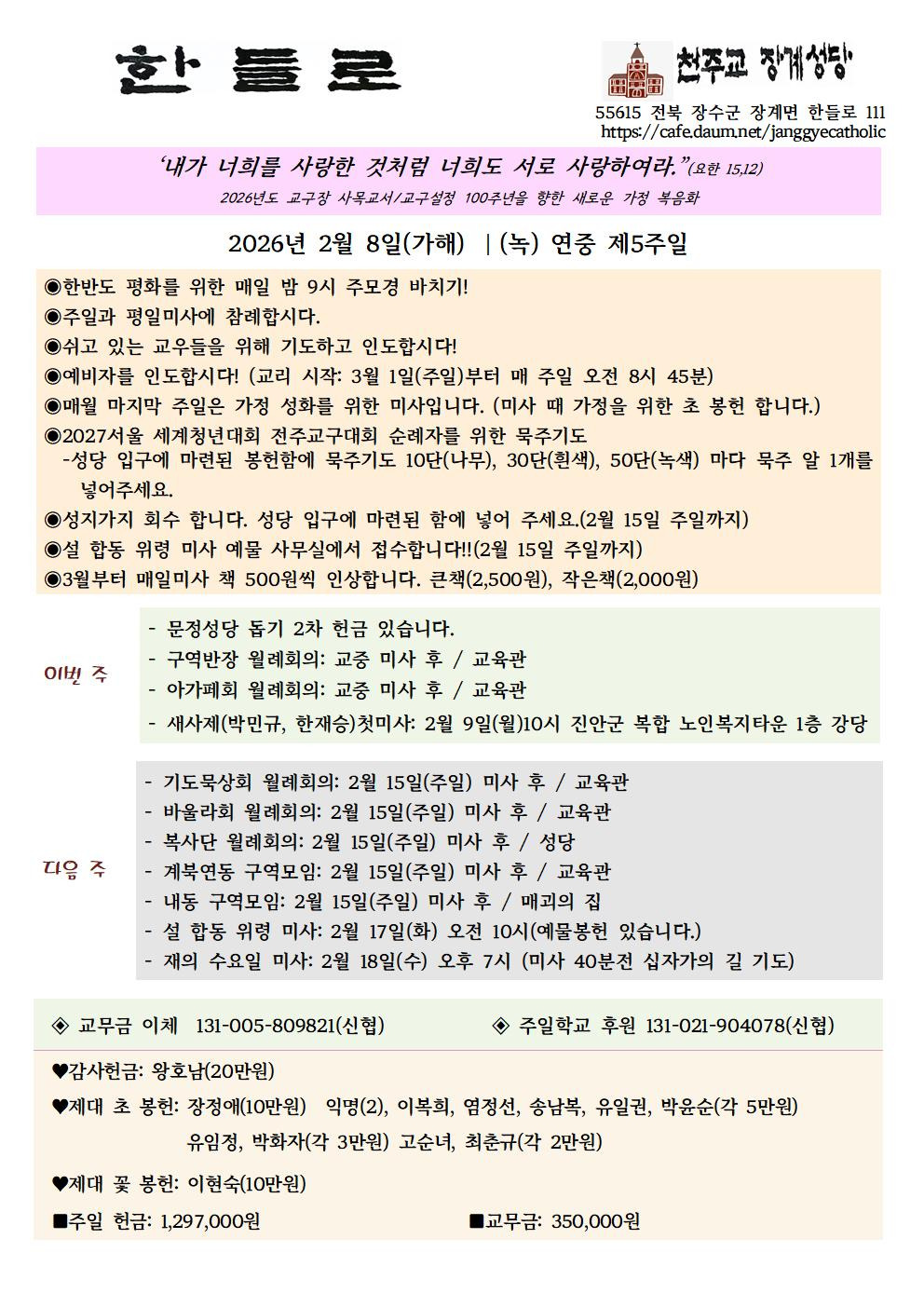 장계성당 소식지[연중 제5주일] 작성자최사비나|작성시간26.02.07|조회수25 목록 댓글 0 글자크기 작게가 글자크기 크게가 다음검색 현재 게시글 추가 기능 열기 북마크 공유하기 신고 센터로 신고 댓글 댓글 0 댓글쓰기 답글쓰기 댓글 리스트