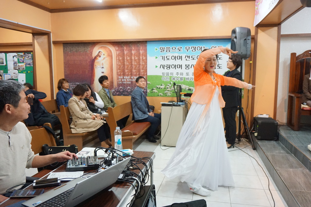 에바다 식구들과 함께 하나님께 주일예배를 봉헌해 올릴 차례가 돼 박종화 목사의 사회로 모든 사람들은 함께 묵상기도를 드리고, 만복의 근원 하나님 1장 찬양을 불렀다. 양승남 집사는 기도를 통해 ‘하나님의 성호를 찬양하며, 살아가면서 우리에게 필요한 은혜’를 간구했다. 에바다성가대의 수화찬양에 이어 온양교회 김은희 집사(굿뉴스울산 전속 워십단장)가 ‘나 가진 재물 없으나’ 워십찬양을 올려드렸다.