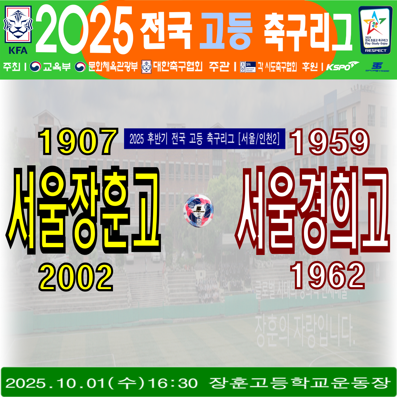 ⚽ 서울장훈고 - 서울경희고 (2025.10.01수 16:30 장훈고운동장), 리그1차전, 7번경기, 2025 후반기 전국 고등 축구리그 [서울/인천2]